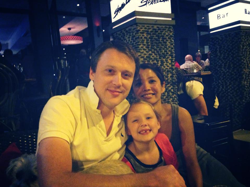 seen here with his wife Yuki, and daughter, enjoying life in Australia..